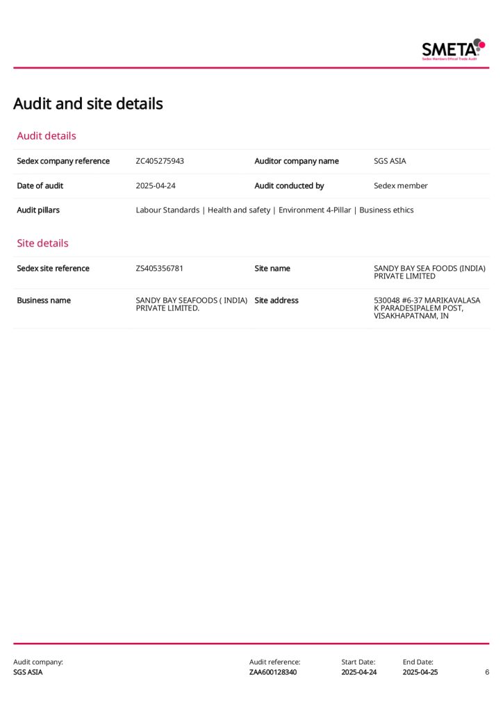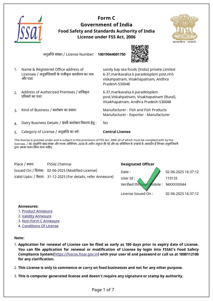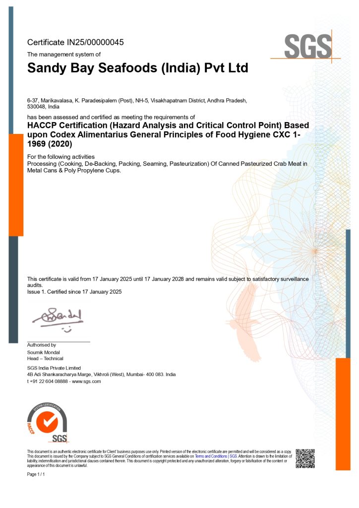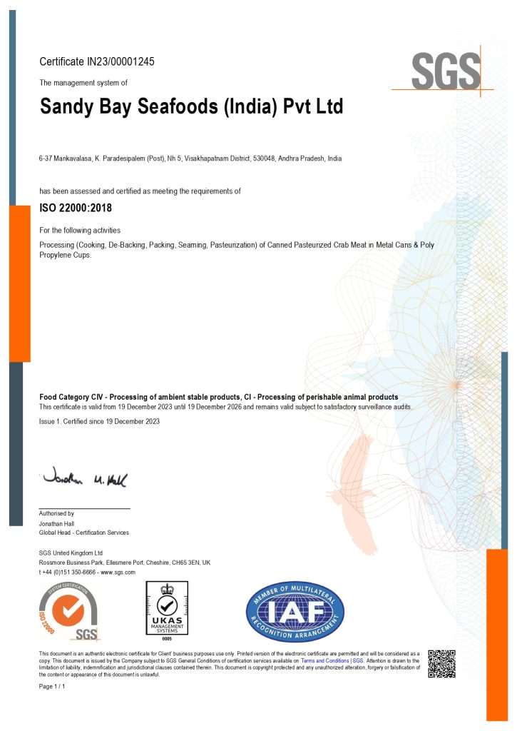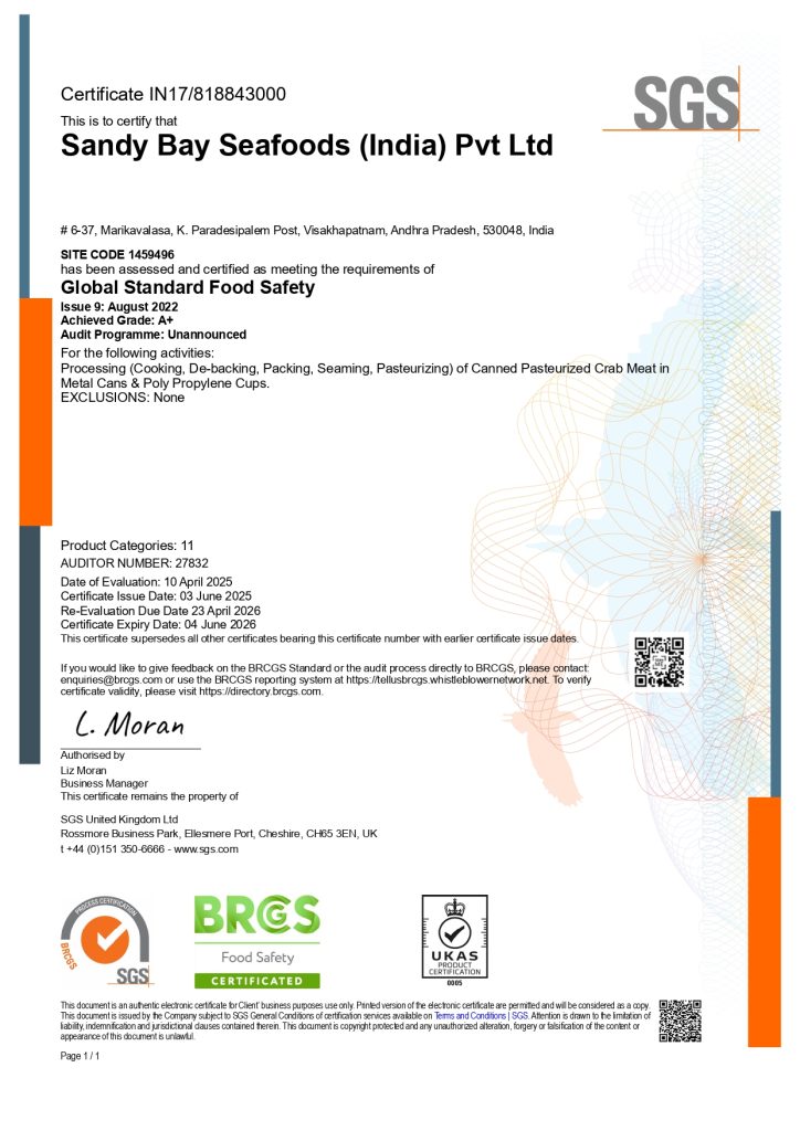 2.Crab Meat Processor Association of India (CMPA-India) – SBS is one of the executive members of CMPA-India and is actively participating in BSC-FIP (Blue Swimming Crab Fishery Improvement Plan) program. The Company is Fully involved in FIP pertaining to Blue swimming crab conservation in India, in coordination with NFI Crab Council – USA.